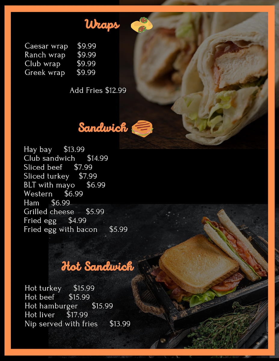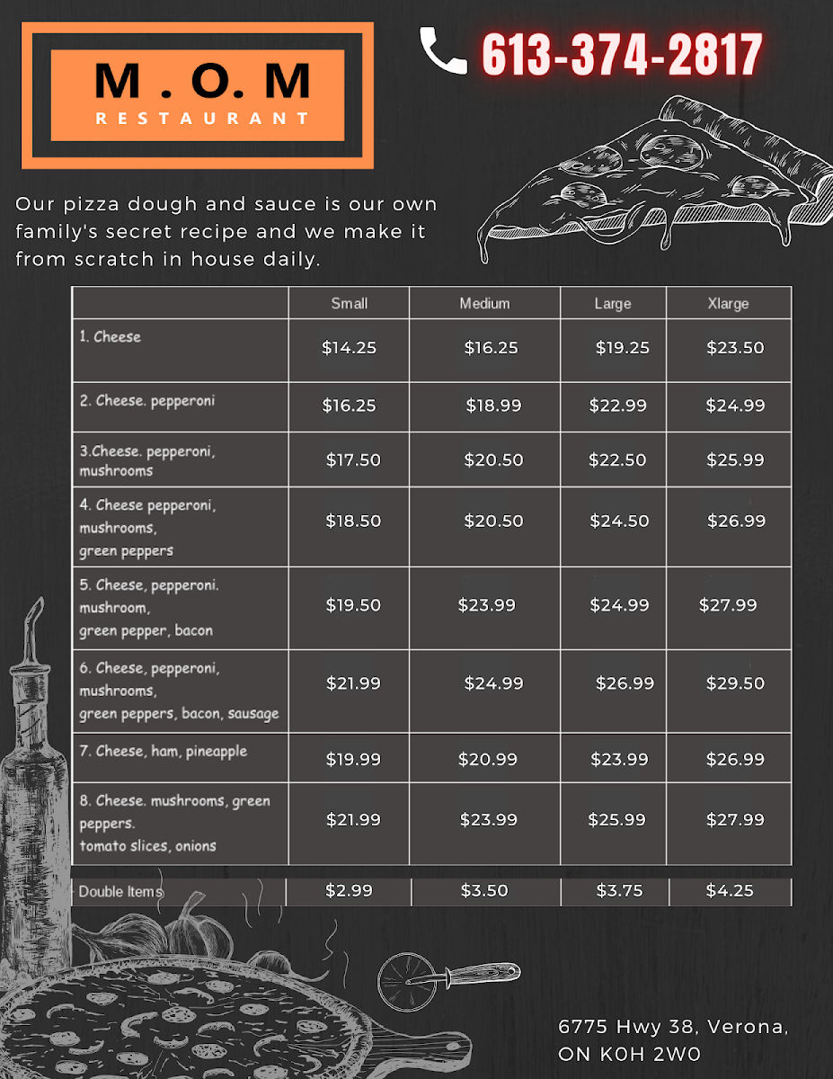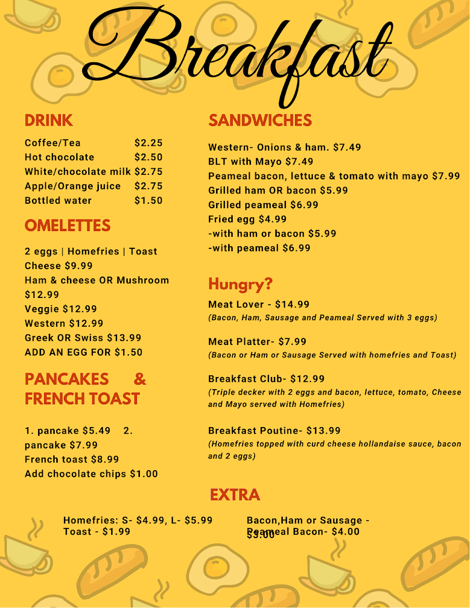 The menu at M.O.M. Restaurant offers a warm and approachable selection of classic and comforting dishes, perfect for casual dining any time of day. From hearty breakfasts featuring eggs, homefries, and toast, to satisfying lunch and dinner options like fish and chips, pork chops with salad, and a range of sandwiches, meals are designed to feel familiar and inviting.