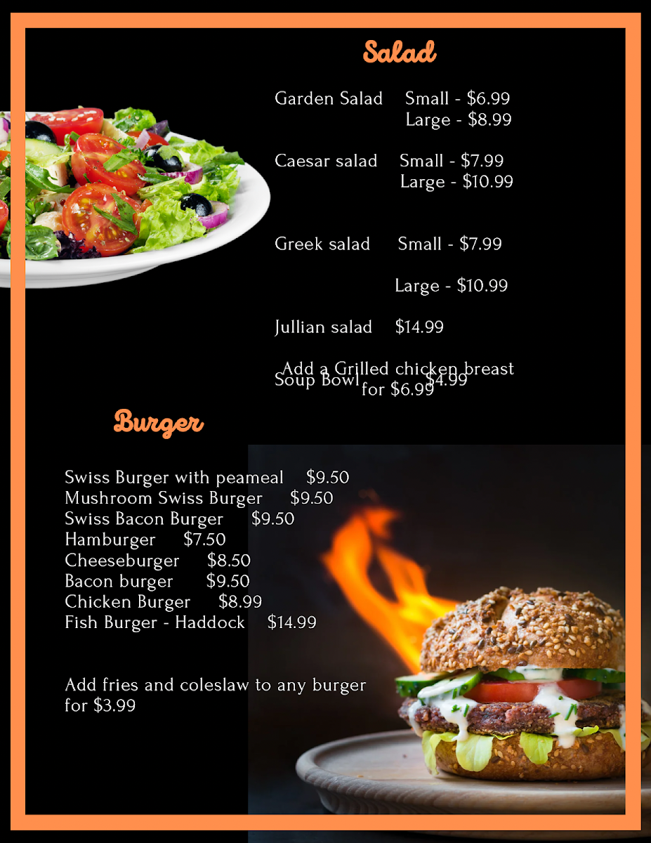 Guests can enjoy simple, flavorful wraps and fresh salads, alongside comforting favorites such as the Swiss mushroom burger or chicken parmesan. Whether stopping by for a relaxed morning meal or a laid-back dinner in the evening, the food complements the calm atmosphere of this cozy local spot, making it easy to unwind and enjoy a well-prepared dish without fuss.